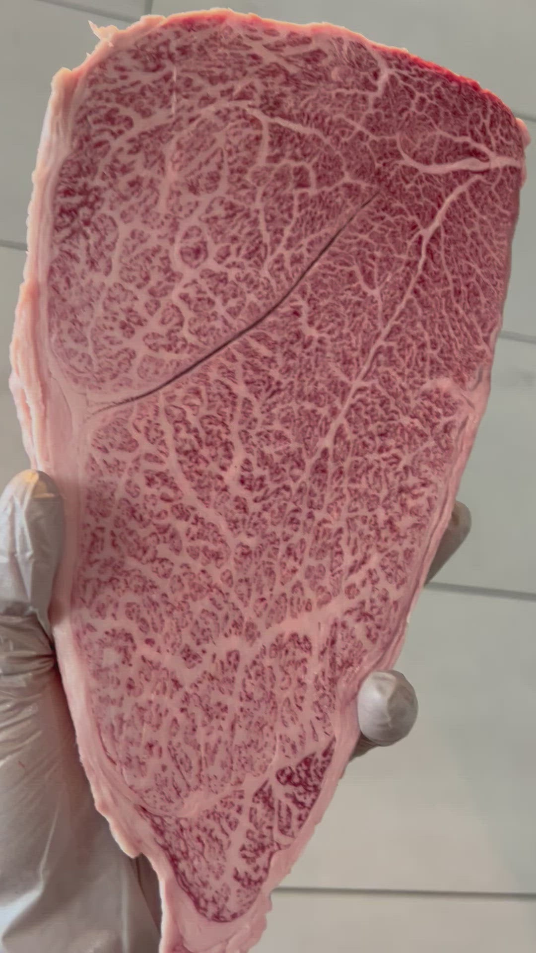 This BMS 10 shoulder cut combines both the fattiness of A5 & the texture + flavor from a muscle that moves, the shoulder. This cut is a great balance of meaty, textured, & extremely well & evenly marbled beef.